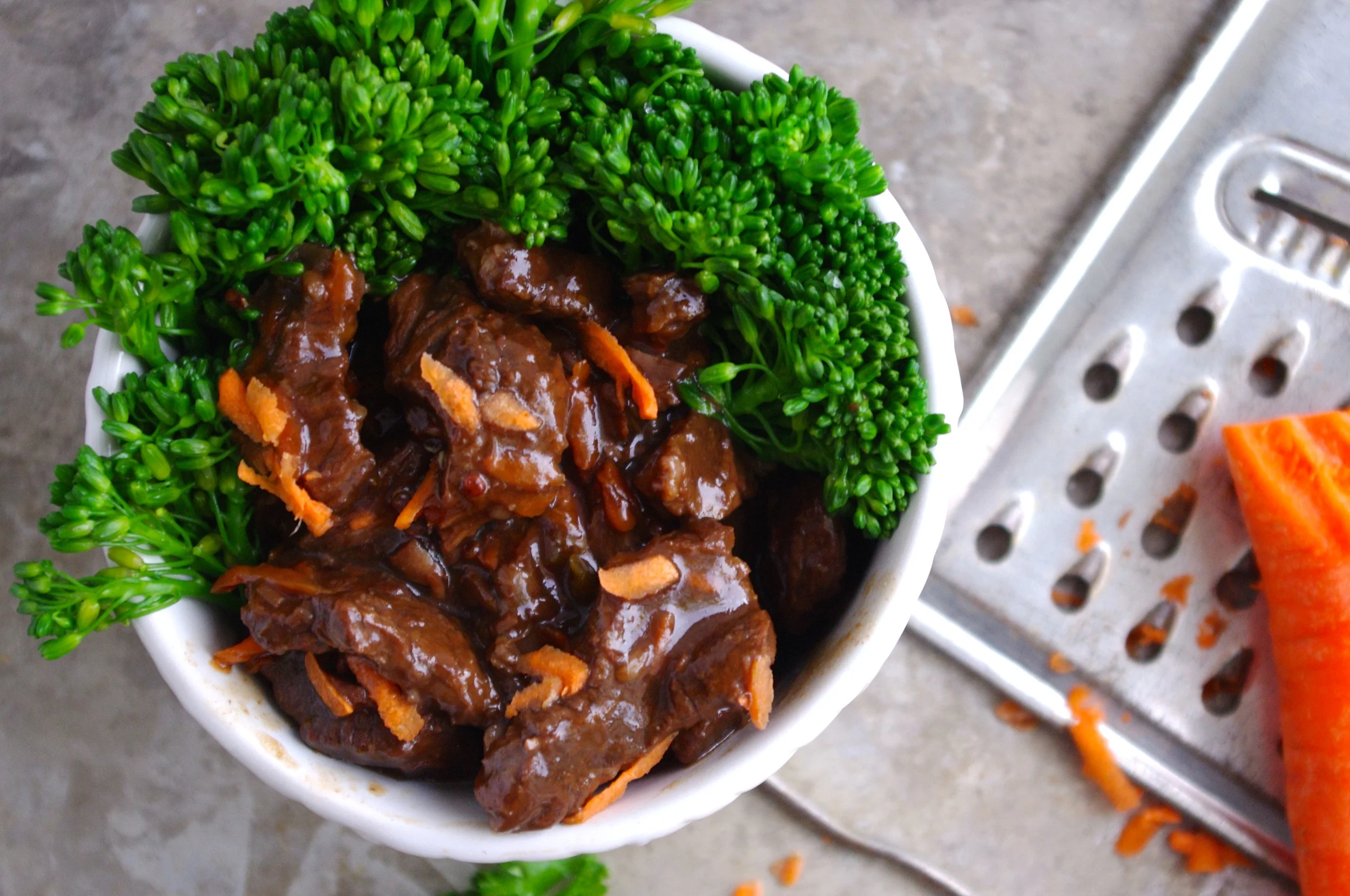 Unfortunately store bought Mongolian stir-fry sauces, or Mongolian beef dishes at restaurants, are typically loaded with refined sugars, and that stacks up the calorie count quickly. This recipe uses honey and a touch of coconut palm sugar as the sweetener, so this sweet and sticky sauce won’t spike up your blood sugars like a sauce full of glucose or corn syrup would. I also used a gluten free soy sauce to keep this recipe completely gluten free as many Asian sauces contain gluten from the regular soy sauce that is usually in the mix.